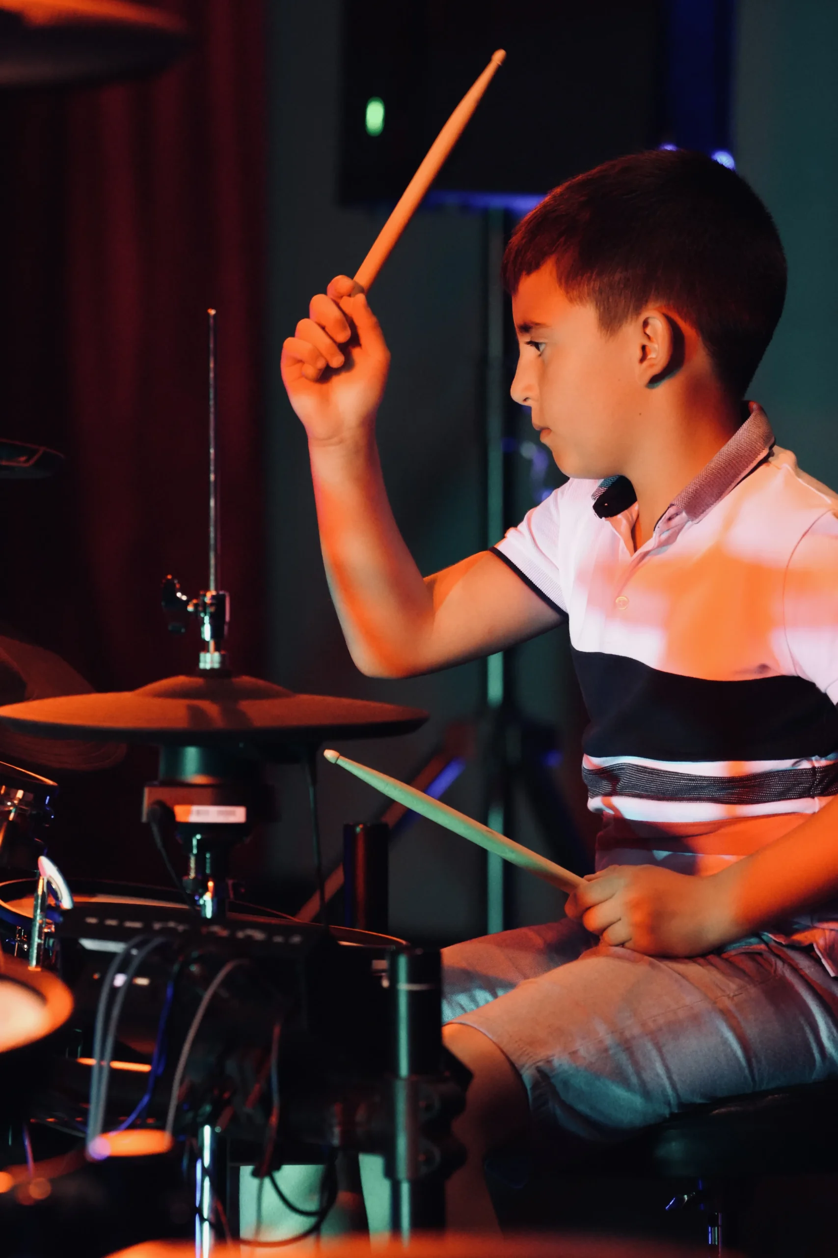 Nada de meses de teoría antes de tocar. Aquí empezamos con las baquetas en la mano